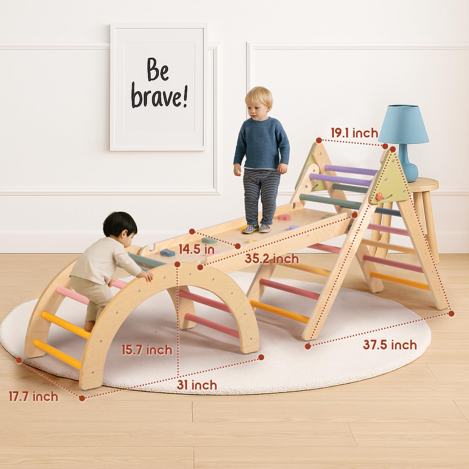 • A Good Companion for Kid: Through constant grasping and climbing with this montessori climbing set, their physical fitness will be exercised unconsciously. And this kids indoor climbing set for multiple participants can exercise your kid's social skills, so let your kid invite their friends to the house